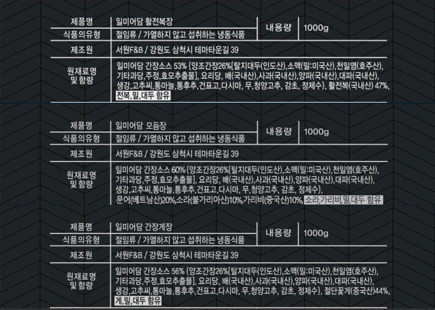 전복장1000g,모듬장1000g(가리비,문어,소라)
