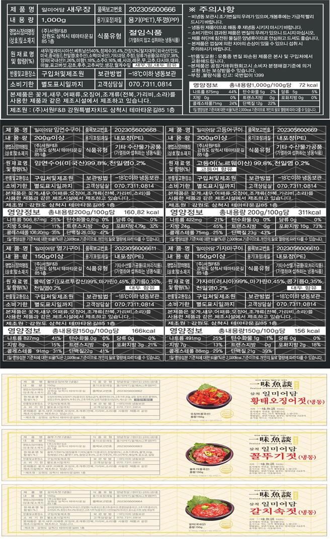 임연수구이200g,고등어구이200g,가자미구이150g,열기(뽈락)구이150g